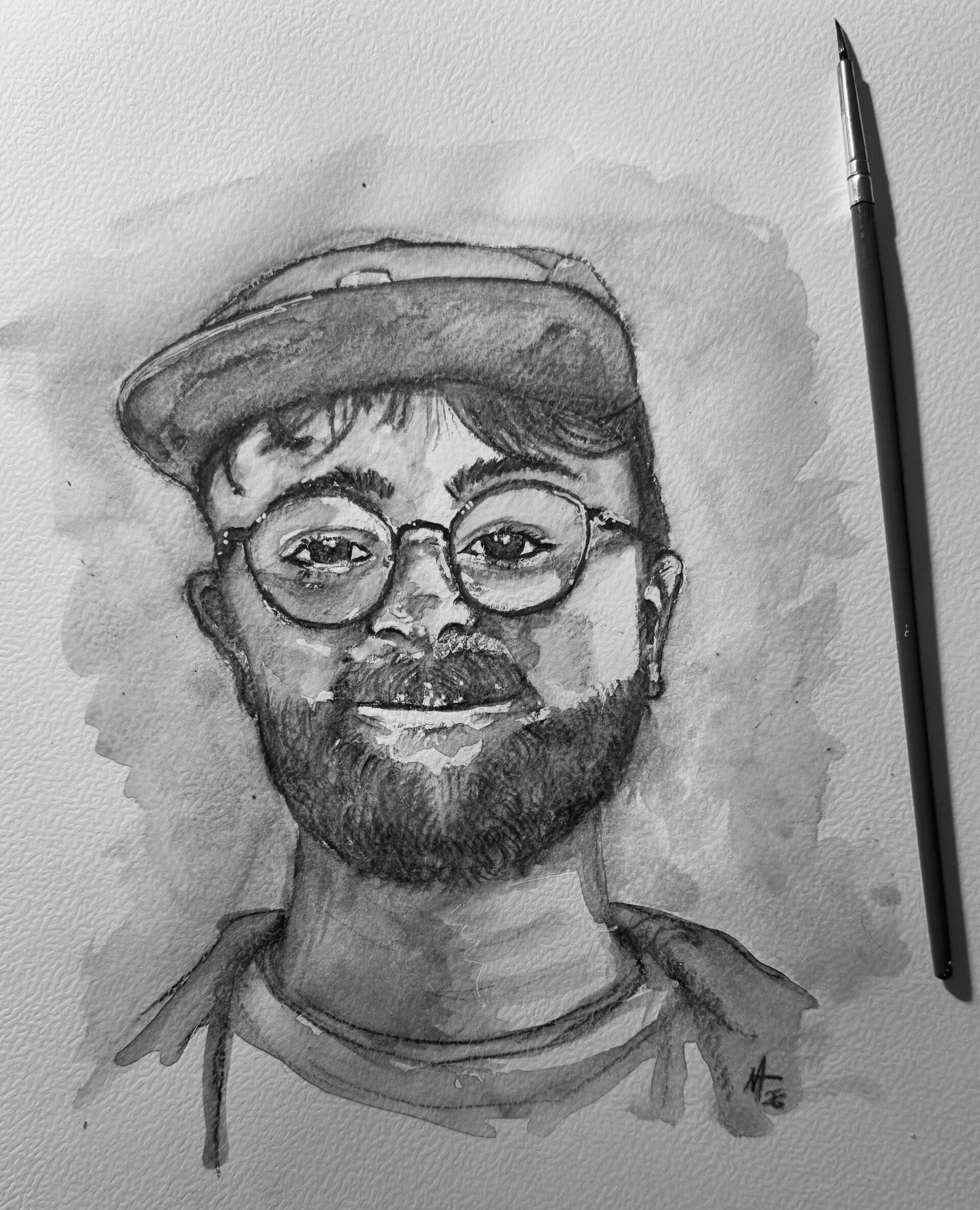 My watercolour paintings explore the delicate balance of light and shade through a uniquely expressive application. The paint is often applied very roughly, allowing the luminosity of the watercolours to shine through and capture the essence of the subject. From expressive animal portraits to insightful human studies, these paintings are filled with vibrant energy and emotional depth.